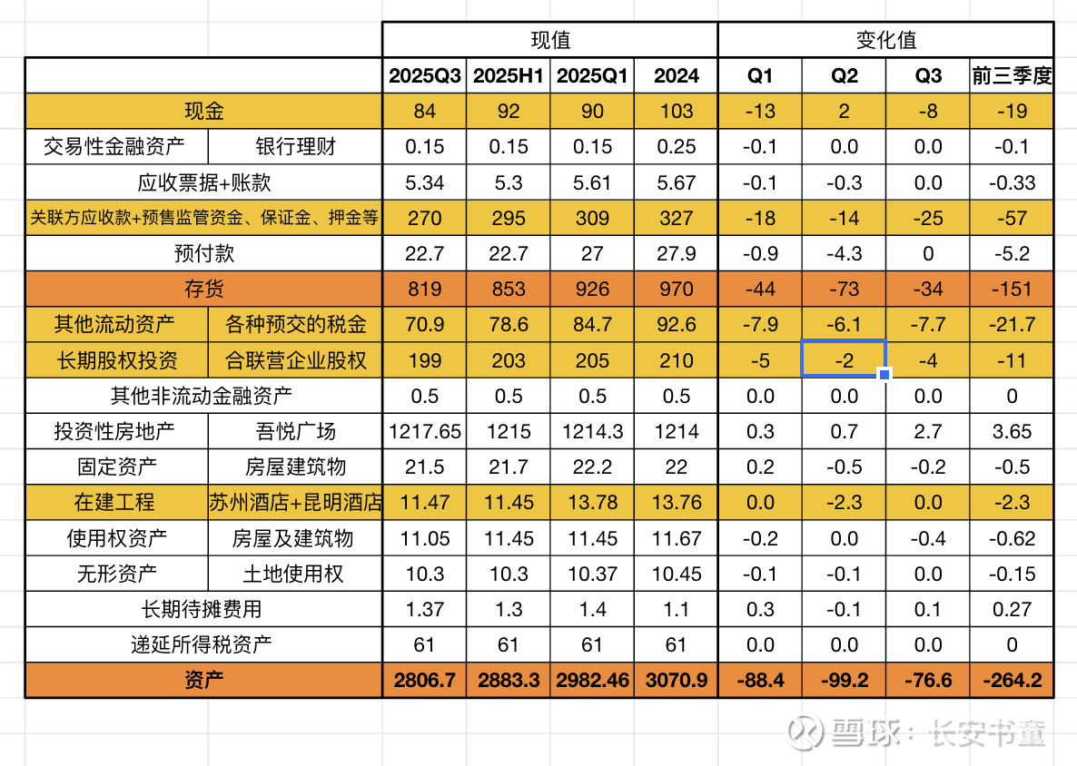1、现金。Q3减少了8亿,前三季度合计减少19亿。