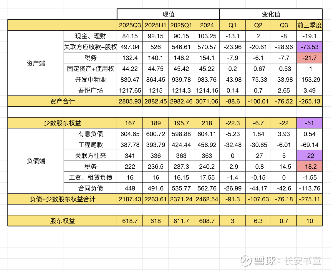 1、应付的工程款。Q1减少了33亿,Q2减少了30亿,Q3只减少了6亿,不太满意,三季度简报中竣工面积不是很多呀,所以新增工程款应该不多,为何同样的房产销售额抵消的工程款不多?【槽点二】