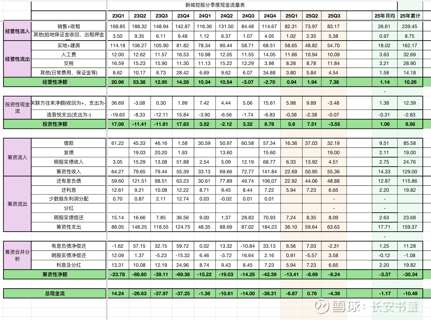 3.筹资性现金,利息支出逐季度减少。季度平均利息,2023年为15亿,2024年8.46亿,2025年为6.61亿。失血渐渐减缓。