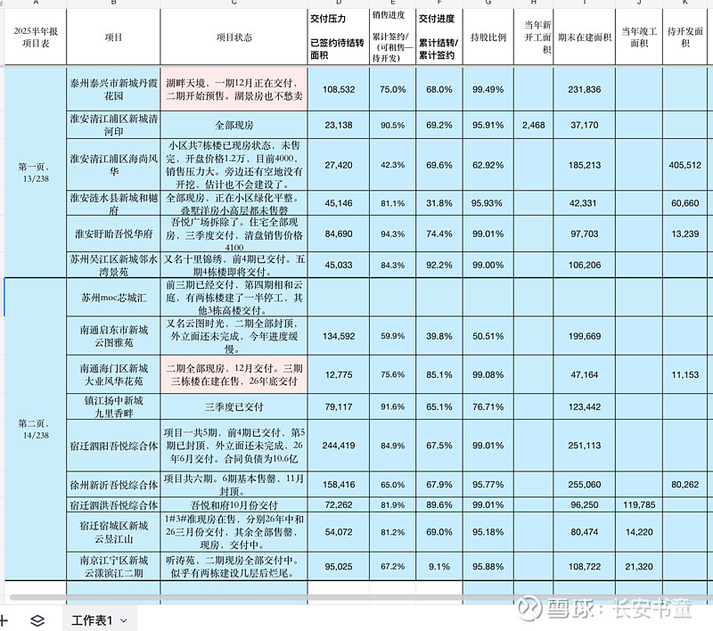 梳理了两页的项目,竣工的不看,持股比例低于30%的不看,剩余交付面积低于1万方的不看。