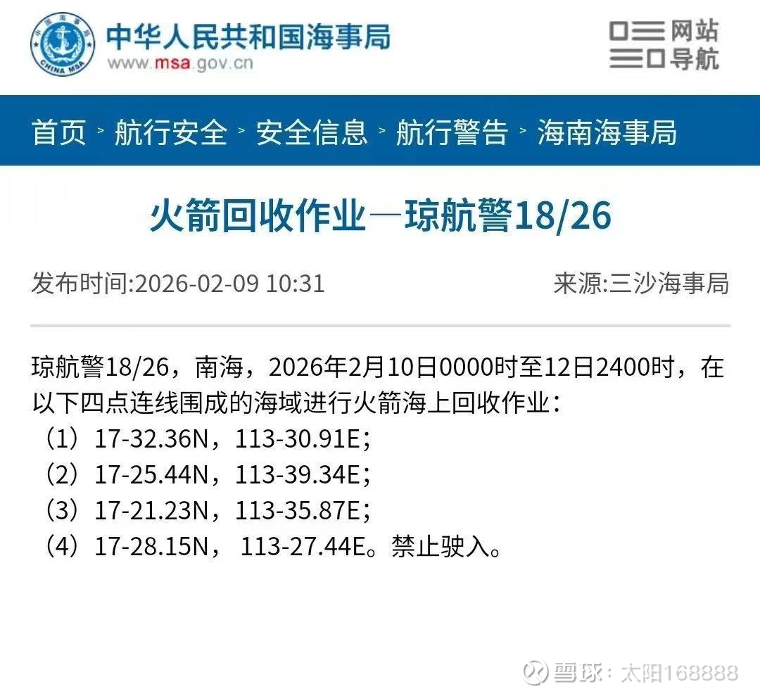 明天国内首次海上回收开始,我还是那个观点,海上回收是最先突破的,spaceX回收首选海上回收就代表一切,不管成功还是失败,都会是海上回收板块的起点$海兰信(SZ300065)$ $中文在线(SZ300364)$ $巨力索具(SZ002342)$