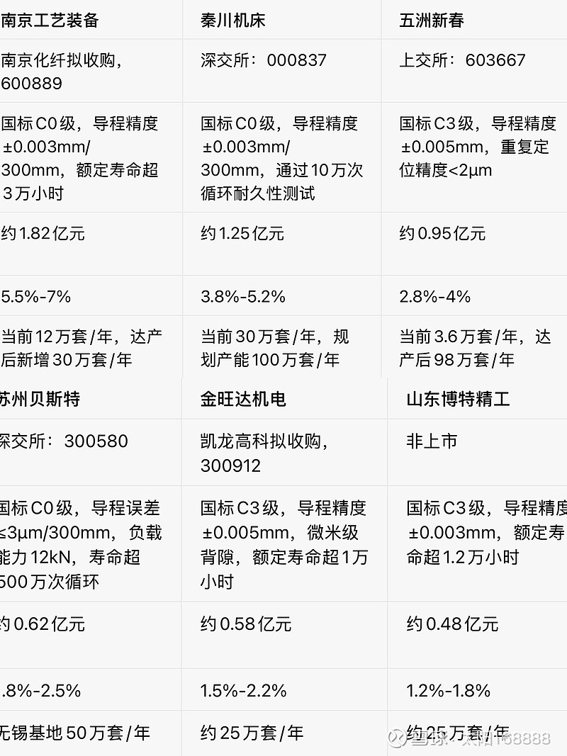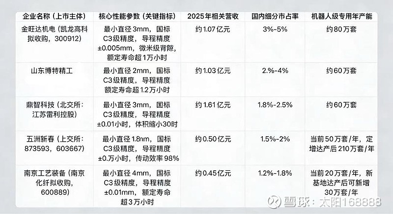 行星滚柱丝杠是人形机器人腿部、腰部等重载关节的核心传动部件,长期被德国力士乐、日本THK等国际巨头垄断,是当前国产替代的核心卡脖子环节,国内实现规模量产的如下,上市仅5家,有这个技术且小规模投产的不列举出来,也有几家,比如北特科技,万向钱潮。