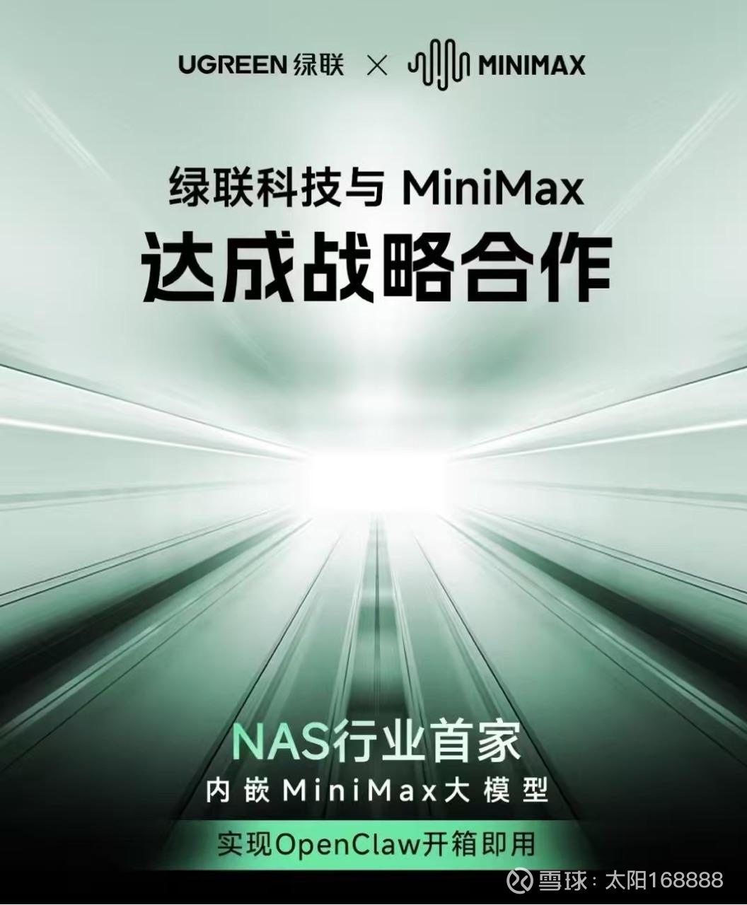 特邀嘉宾MiniMax 稀宇科技 Agent 架构师张如欢,分享了 OpenClaw、MiniMax 大模型与 NAS 产品的深度结合方案,为 AI 时代个人数据的智能管理提供了全新思路;绿联 AI 智能实验室主任周凯捷则表示,NAS 作为智能存储中心,智能安防系统的加入,实现了品牌从「数字资产保护」向「物理空间保护」的延伸。$绿联科技(SZ301606)$ $MINIMAX-W(00100)$