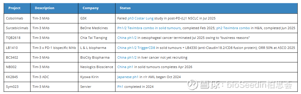 2025年初,阿斯利康、BMS两家MNC相继宣布放弃旗下TIM-3抗体的开发。