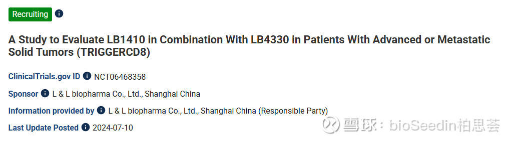 目前LB1410处于与长效IL-10产品LB4330联用治疗实体瘤的临床1/2期研究中。