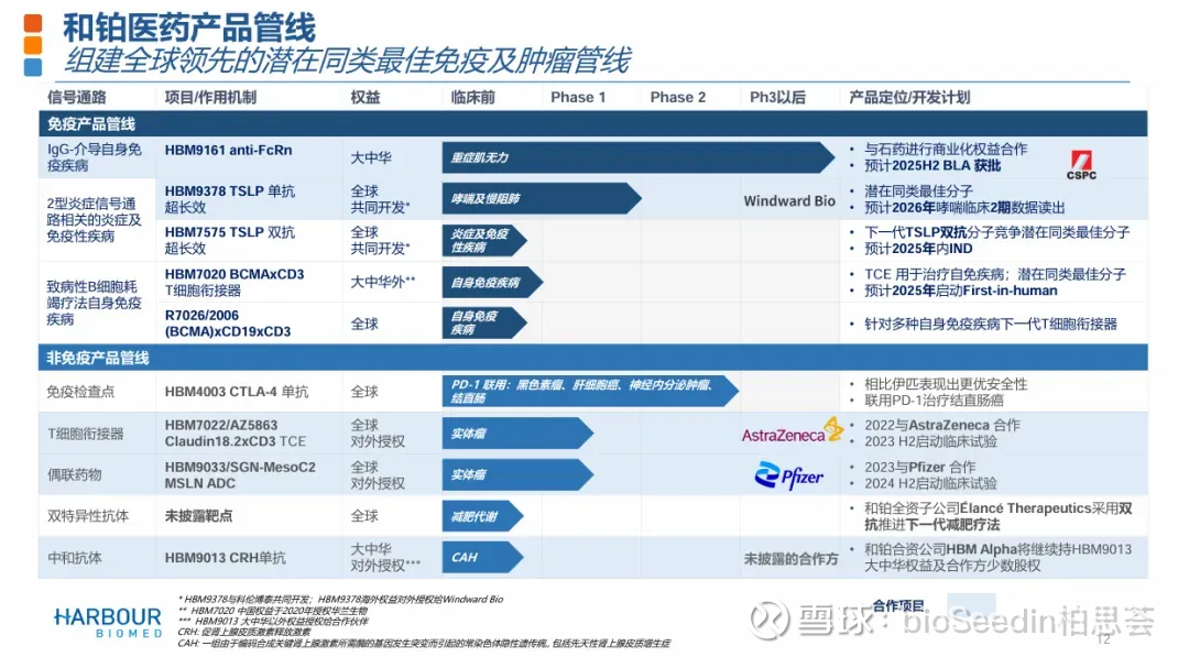 包括长效抗TSLP抗体HBM9378、B7H4×4-1BB双特异抗体HBM7008等管线,和铂依然在源源不断创造潜在的FIC/BIC分子。
