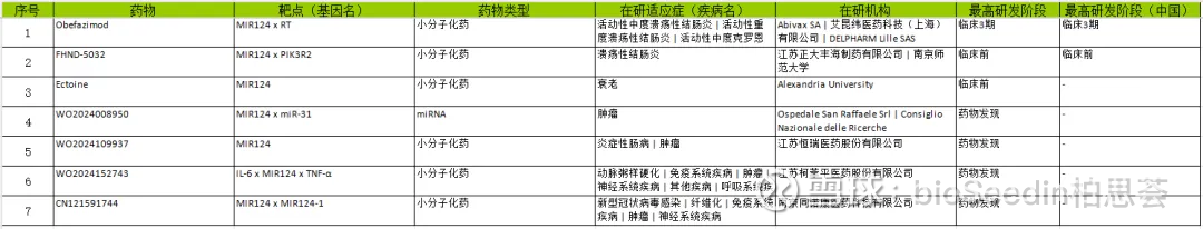 miR-124在研药物一览