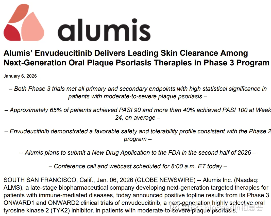 武田的Zasocitinib和Alumis的Envudeucitinib双双亮出III期数据:前者以每日一次口服给药、无进食限制的便利性与稳健疗效站稳脚跟,后者则凭借刷新现有TYK2抑制剂疗效上限的数据傲视全场。