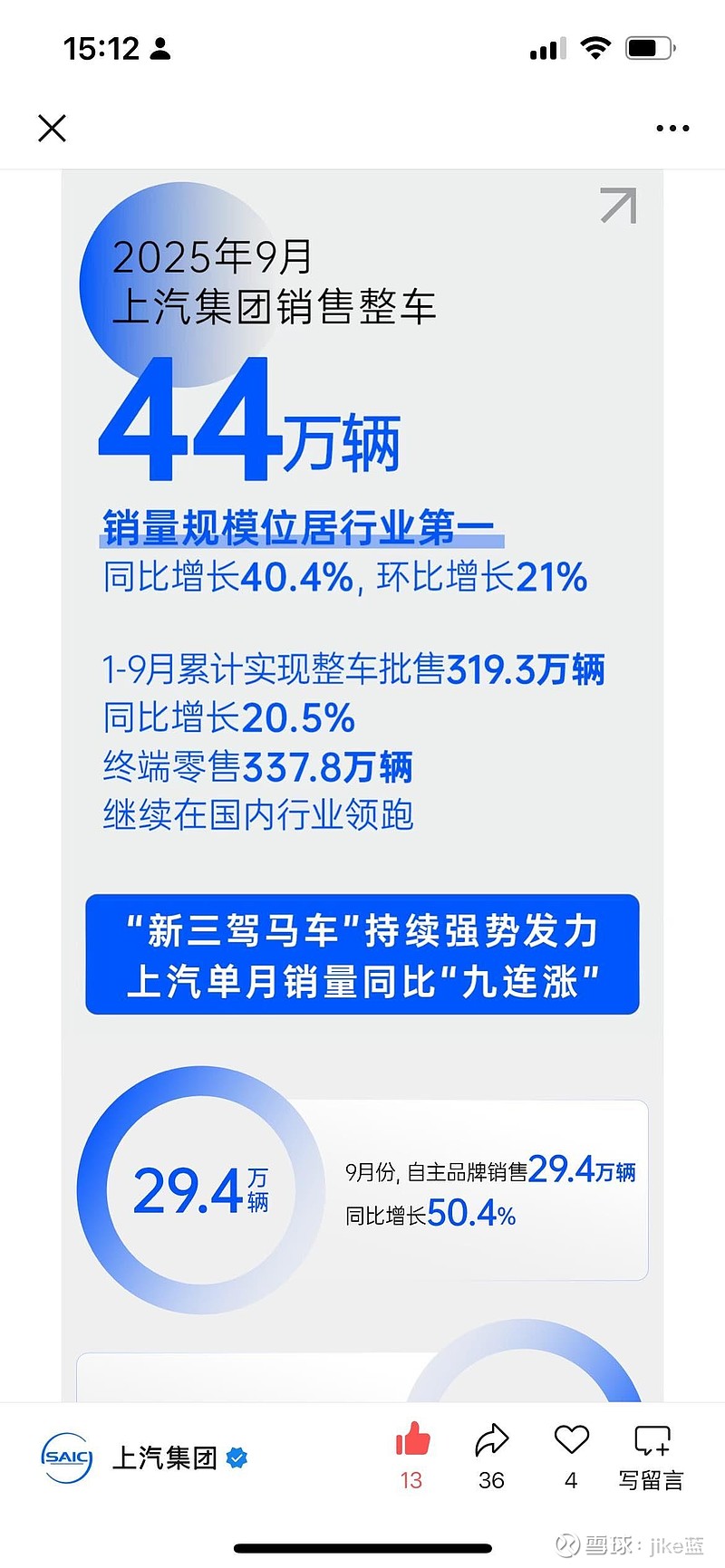 $上汽集团(SH600104)$ 官方数据来了,长期看上汽的综合实力依旧强劲,毕竟长期的沉淀在。