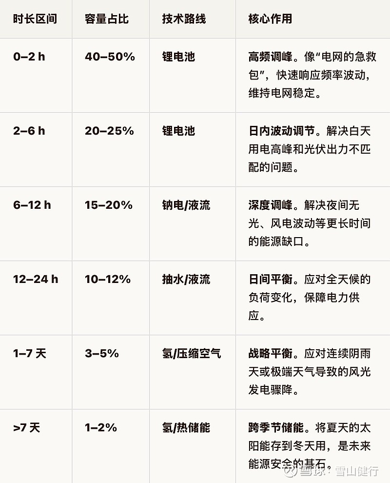 其中按照不同的时长储能中心分类及占比: