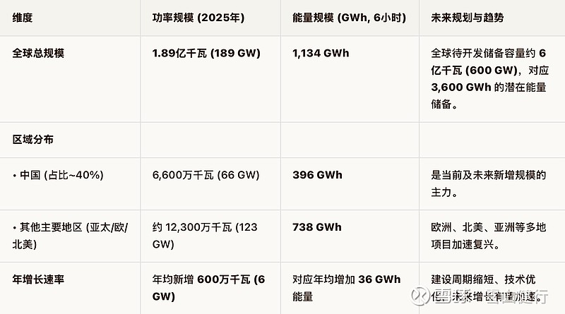 全球的抽蓄储能大体情形如下表