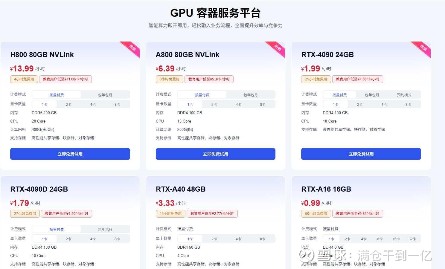 鸿博股份最初手上是搞到一批英伟达的卡的,所以说你需要任何英伟达的卡,他都能满足你。鸿博股份的网站上就有各种算力的报价,你想用什么卡,他就给你配什么价格。你下单以后,鸿博股份就会对接各种提供算力的公司。各种可以提供算力的公司有各种来路,有各种渠道进来的:有合规的,也有水上漂来的……,反正他们能把算力搭建起来。但是有算力并不是完全能把它使用掉,有的时候都是闲置,那鸿博股份就是这个搭桥的。当然了,鸿博也不可能接到阿里字节这种大厂的巨量订单,它自己仅有的那点算力也不够大厂用的。