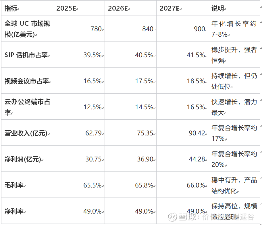 亿联网络的增长将主要来自三个方面:优势业务的自然增长(SIP话机保持稳定增长)、高增长业务的扩张(视频会议和云办公终端快速增长)和新业务的拓展(如医疗助听器领域)。预计2025-2027年公司净利润复合增长率约18%,略高于营收增速,体现规模效应和运营效率提升。