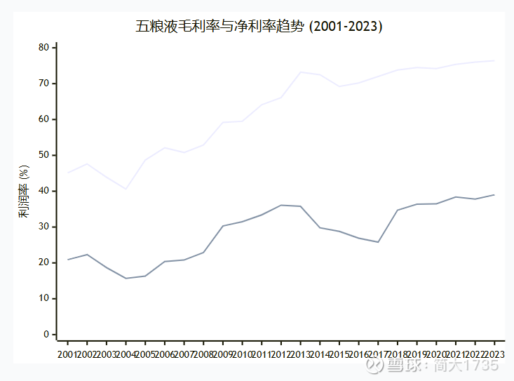 历史上,五粮液净利润率有两个低点,一个是2004年时候,主要是因为贴牌酒较多导致,还有一次是在2014年,主要是禁酒令的影响,只是这个背后有没有行业周期的影响在里面呢?从2004到2014差不多十年,从2014到2024又是一个十年。