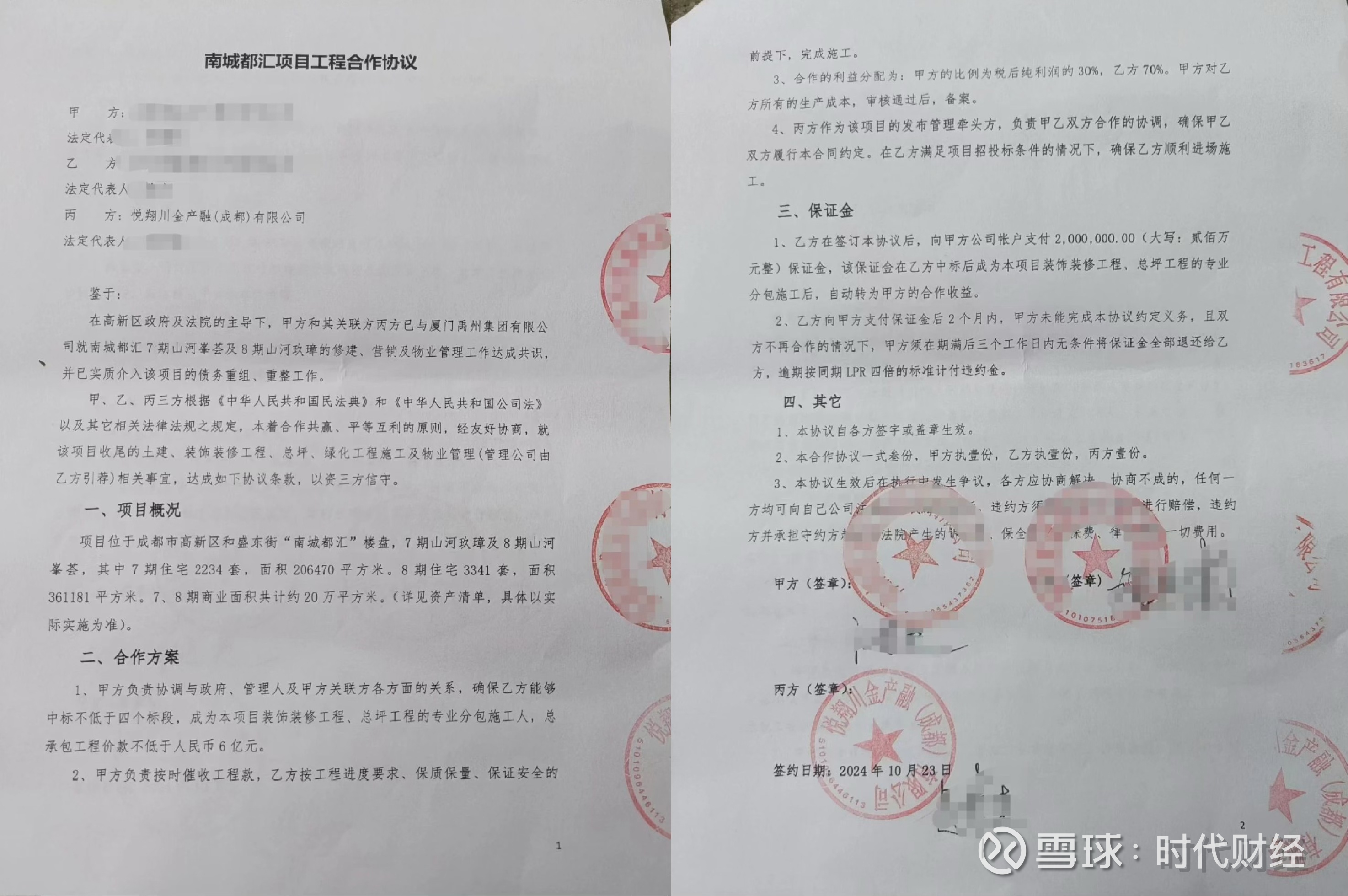 根据中国经营报报道,去年10月,一家成都的企业作为乙方,与甲方、丙方签订了《南城都汇项目工程合作协议》,并向甲方支付了200万元保证金。