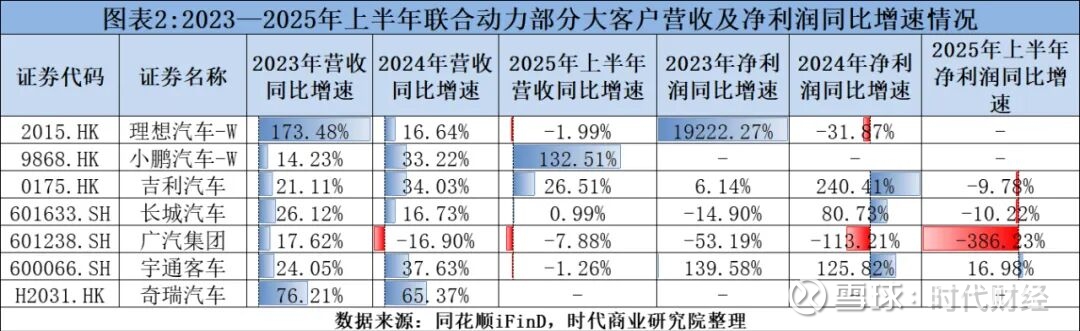 其中,报告期内作为联合动力第一或第二大客户的理想汽车,2024年营收同比增速为16.64%,跟2023年同比增长173.48%相比,增速大幅放缓。而今年上半年,理想汽车的营收同比增速为-1.99%,出现负增长。