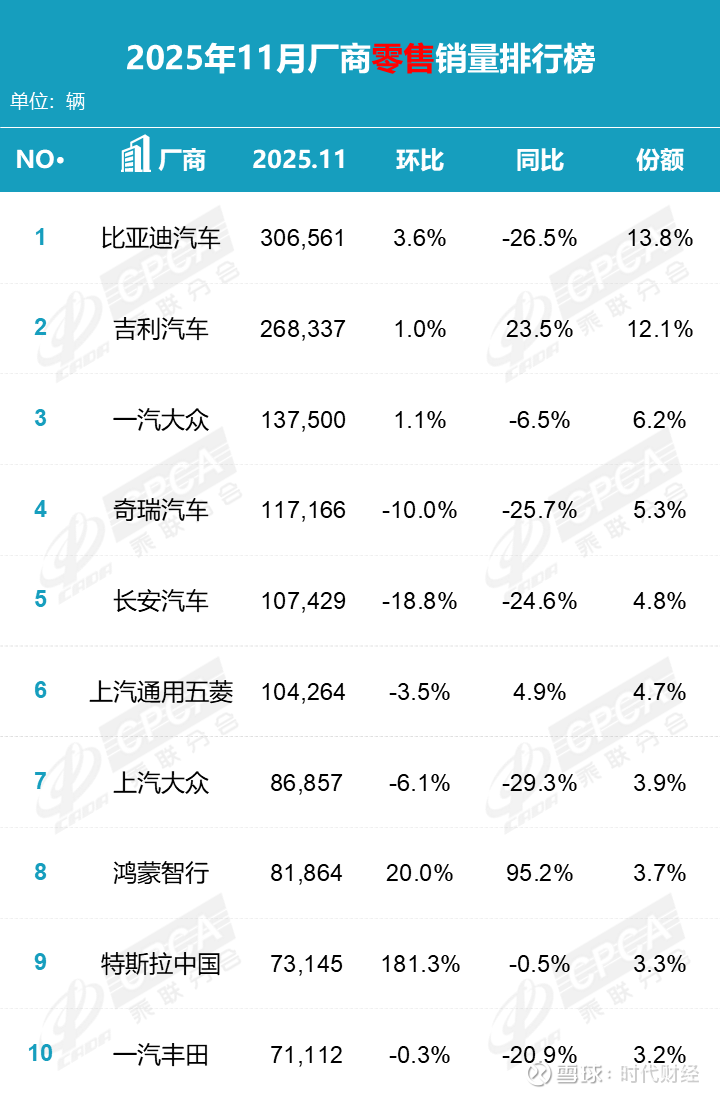 此外,根据此前乘联会披露的数据,今年11月,国内狭义乘用车市场零售销量达222.5万辆,同比下降8.1%,环比下降1.1%。