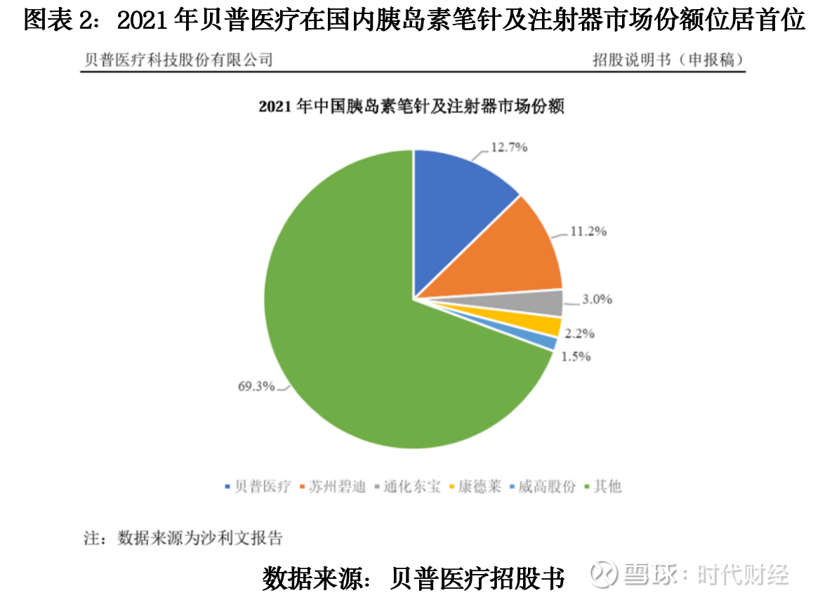 而2025年7月,另一家同行企业贝普医疗科技股份有限公司(下称“贝普医疗”)的创始人兼副总经理王兴国在采访视频中则表示,贝普医疗糖尿病用的胰岛素类的穿刺器械产销量位居全国第一位。此外,在贝普医疗的招股书中,根据弗若斯特沙利文研究数据,贝普医疗2021年胰岛素注射相关产品(含胰岛素注射笔针、胰岛素注射器)的市占率在国内居行业首位。