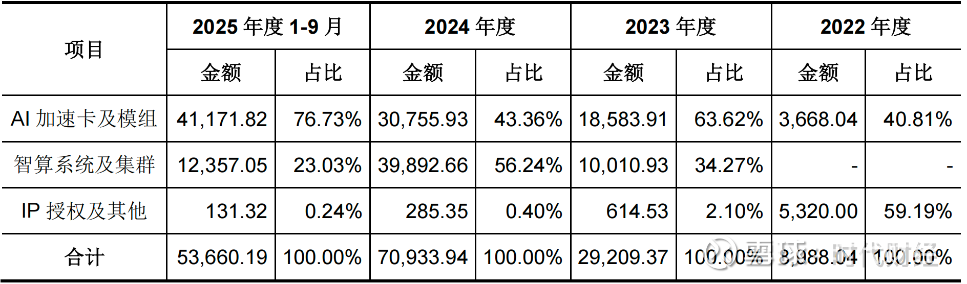从产品来看,燧原科技的产品包括云端AI芯片、AI加速卡及模组、智算系统及集群,以及AI计算及编程软件平台。其中,AI加速卡及模组、智算系统及集群是贡献公司收入的主要产品形态。在去年前三季度,AI加速可及模组的收入占比为76.73%,智算系统及集群的收入占比为23.03%。