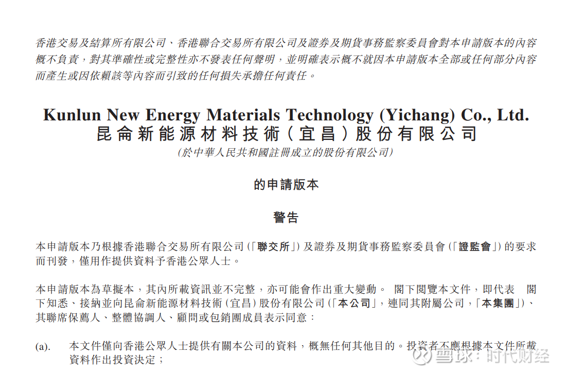 近日,时代财经获悉,港交所披露了昆仑新能源材料技术(宜昌)股份有限公司(下称“昆仑新材”)的上市申请,中信建投国际、平安证券(香港)为其联席保荐人。