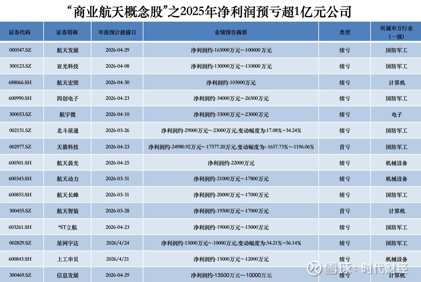 与预增阵营的“火热”形成鲜明对比的是,商业航天概念板块的另一端正处于亏损寒冬之中。
