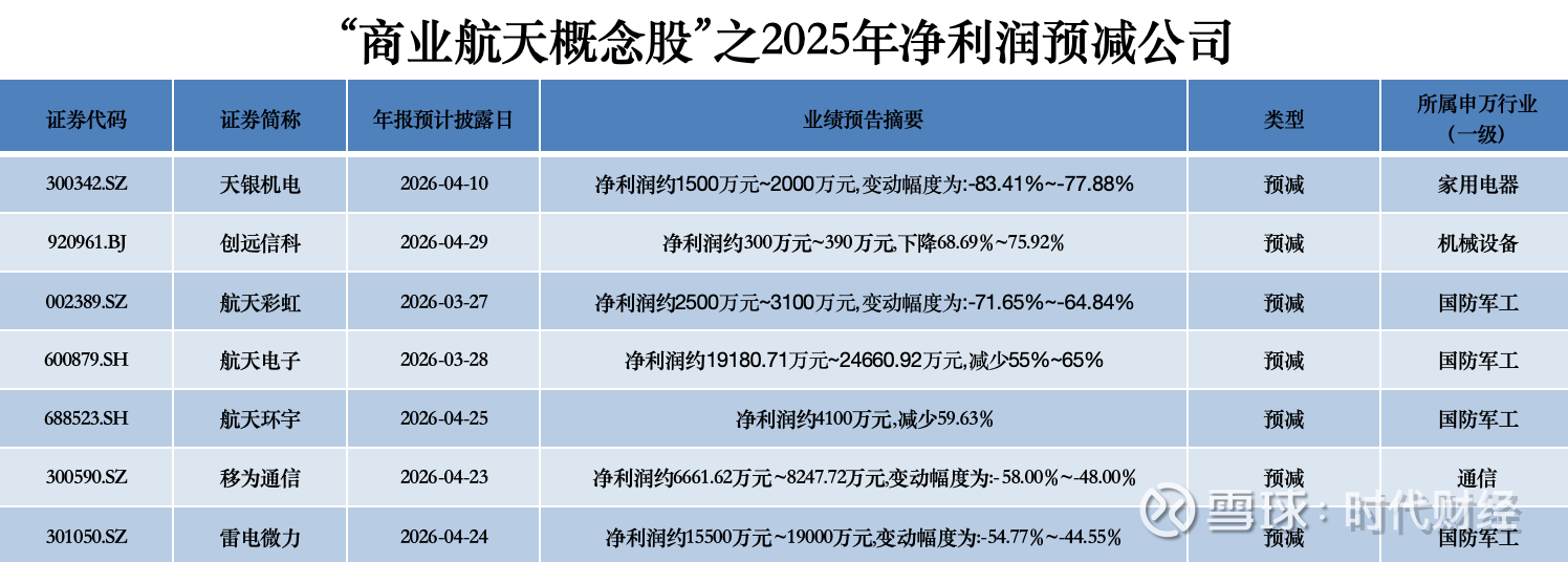 然而,在经历了一轮迅猛的估值拔高后,市场关注的焦点正迅速回归基本面。随着2025年报业绩预告披露收官,A股商业航天板块的年度业绩也逐渐展示出真实底色。
