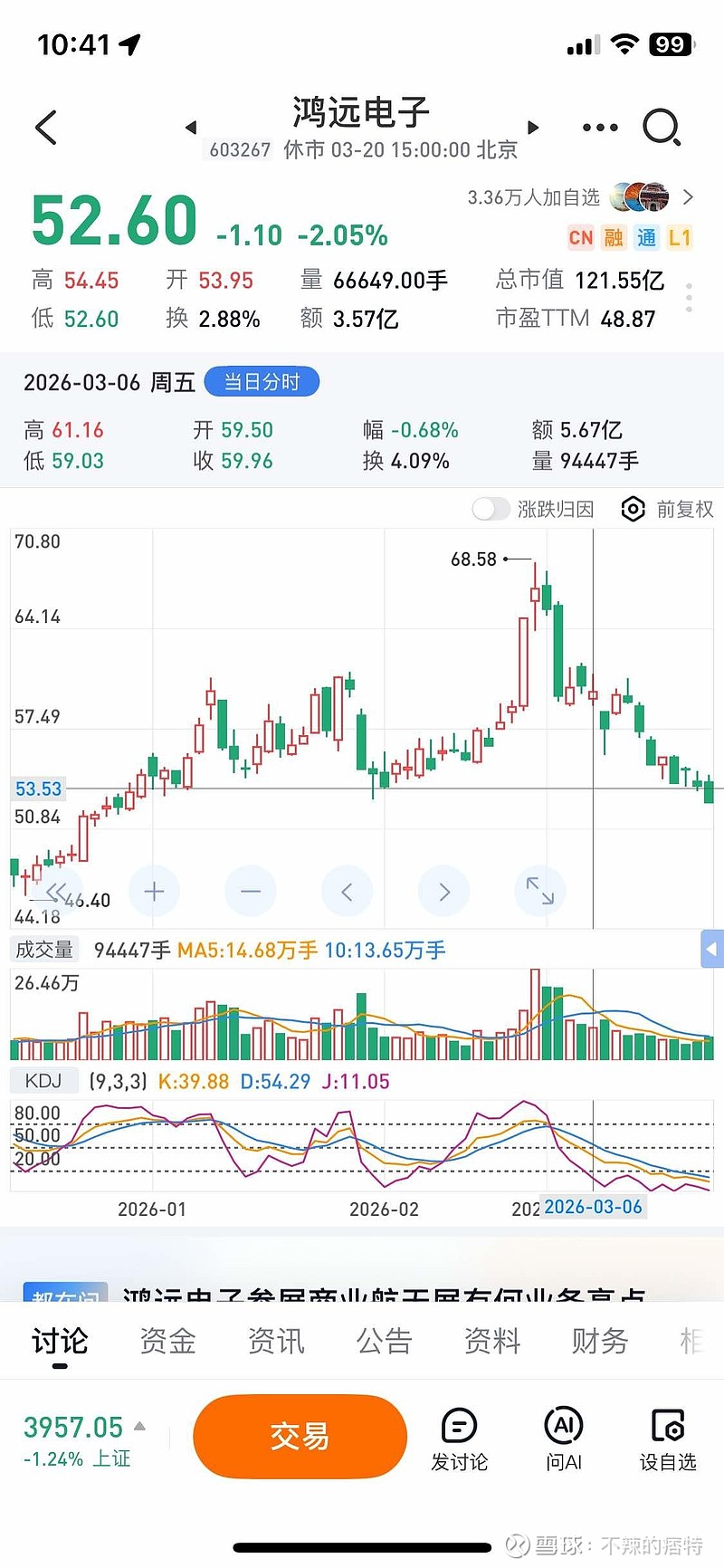 $鸿远电子(SH603267)$