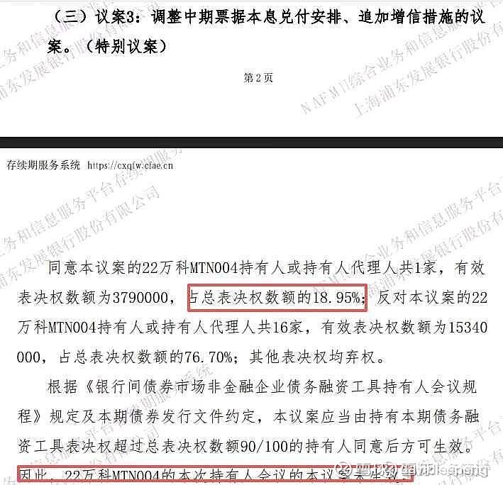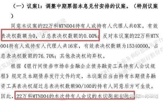 有人截了图,也看到了第一项展期投票,全部都是投了反对票,出奇的一致,看起来,博弈的成份很高,一个赌你到期不敢不还,一个赌你担心我破产没钱还,能晚点就晚点。