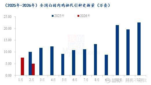 2026年与2025年祖代引种相同点:1-2月份受国外高致病性禽流感影响,国外祖代引种暂停;更新量以科宝及国内品种更新为主;安伟捷品种引种国为法国,美国;新西兰科宝暂停引种。