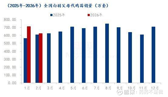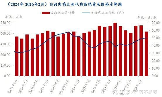 自2026年开始,白羽肉鸡祖代引种受法国高致病性禽流感的影响,引种受限,截至3月份,依旧没有引种确定的消息,2026年1-2月份祖代更新总量为12.56万套,且均已国内自繁品种为主;2月份父母代鸡苗销量开始减少,环比减幅11.99%。当前祖代更新数据的详细情况及父母代销量减少的原因如何,本文就祖代父母代一系列数据,和大家分享一下具体的情况: