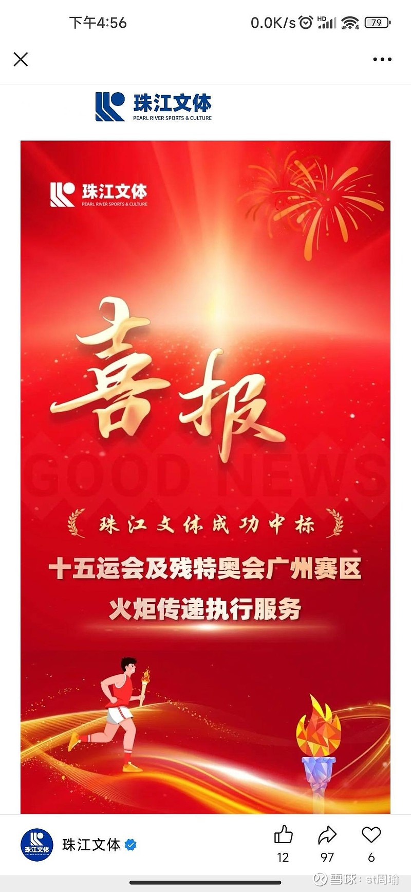 恭喜公司中标全运会火炬传递项目,最正宗的全运会概念股,没有之一。