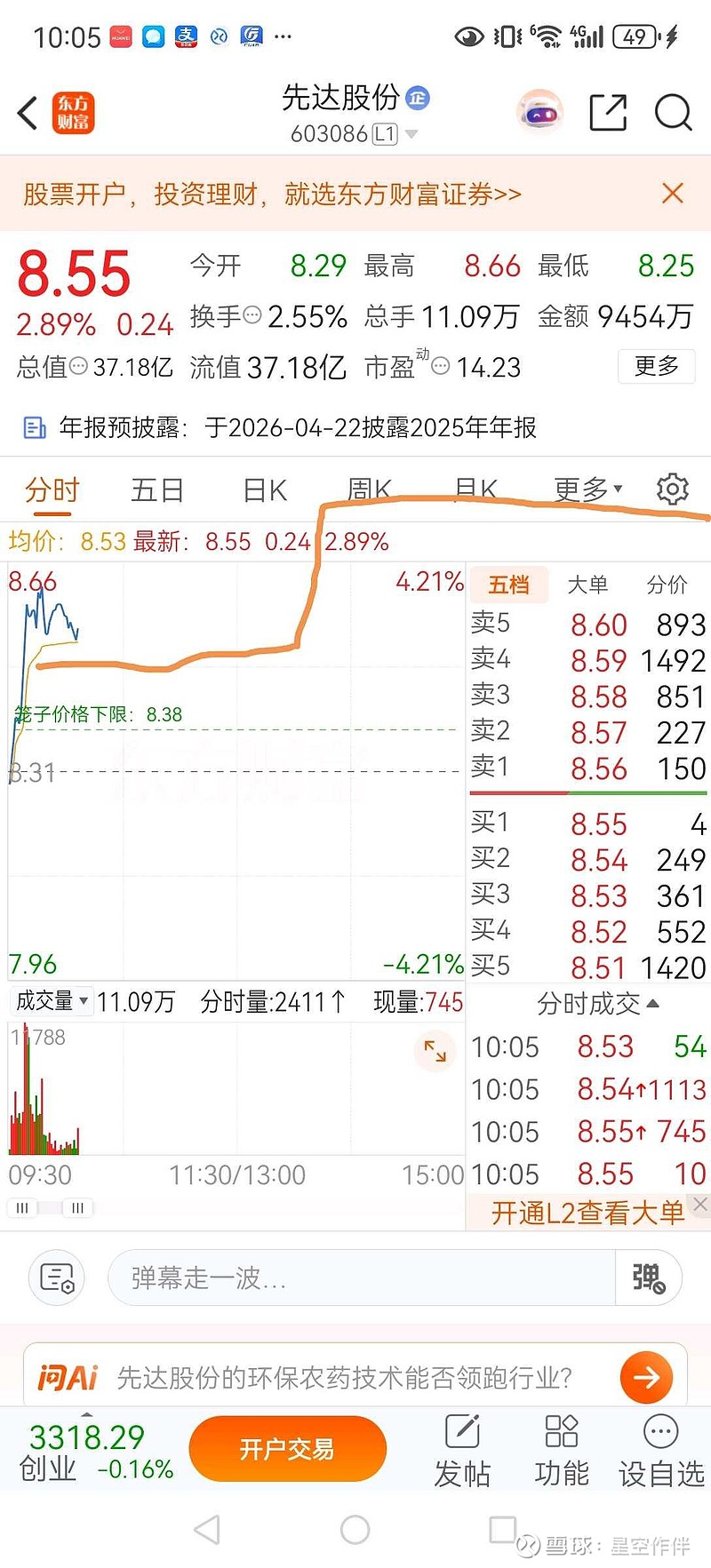 $先达股份(SH603086)$