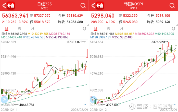 今天日本、韩国股市也同样大涨。