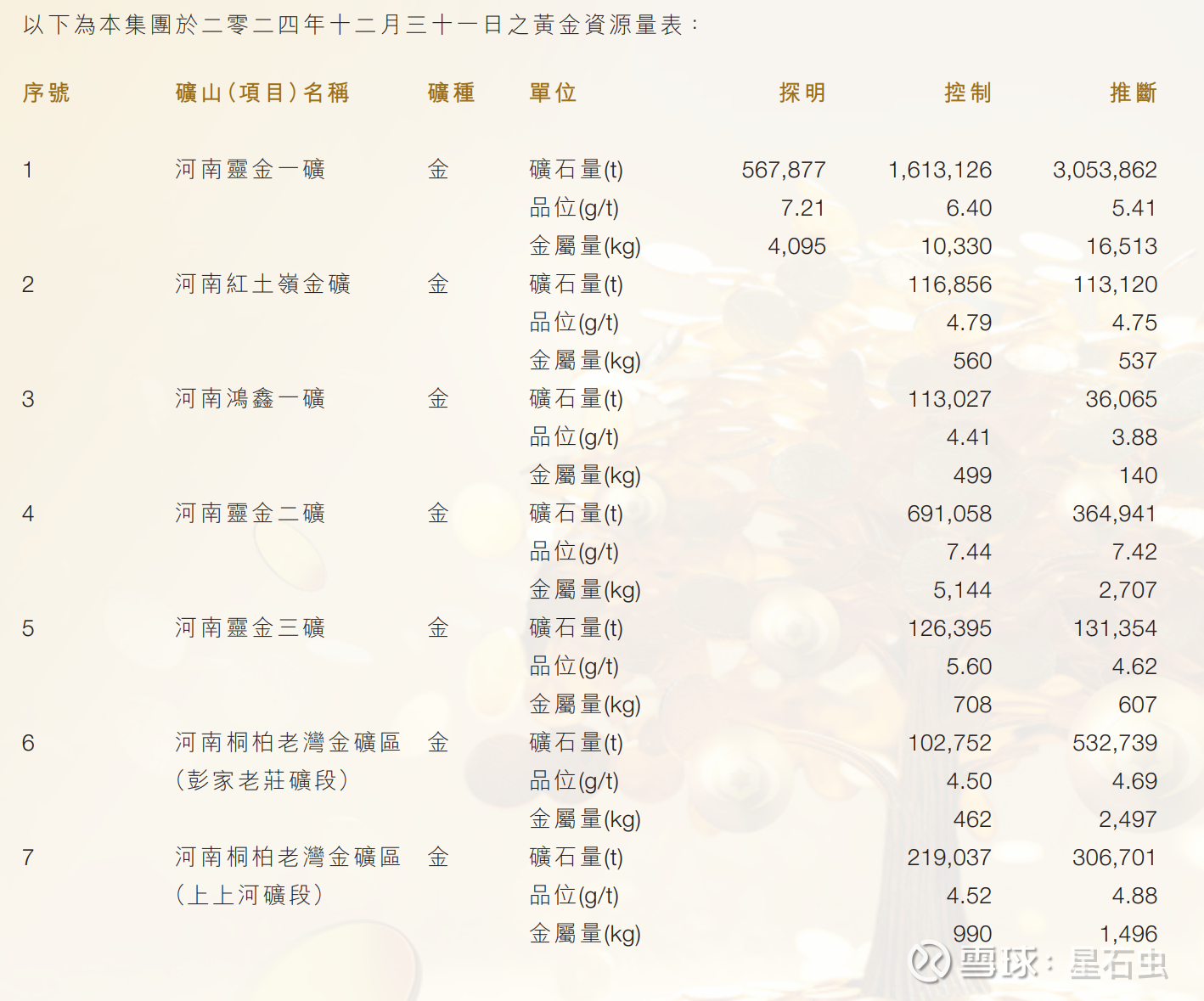 按上图可以看到灵宝的品位确实是高的离谱,平均8g/t的矿山在全球范围内都很难找到,资源质量还是相当好的;但公司提到2011年之后就没有大规模更新过地质报告,所以这些数可能都不是很准。按目前看到的信息这几个矿不太可能假,不过在金价涨这么多的情况下,下一次地质报告可能会扩大边界品位,但也会对应增储增产。主要的金矿其实都存在这个问题,地质报告太老or跟不上黄金的涨幅,导致EV/储量这个指标非常不准(比如蒙古焦煤的金矿2023年做的可研,用的金价才1800USD/oz,如果按可研去算不值多少钱,但如果按ERD的增储增产说法,可以直接起飞)