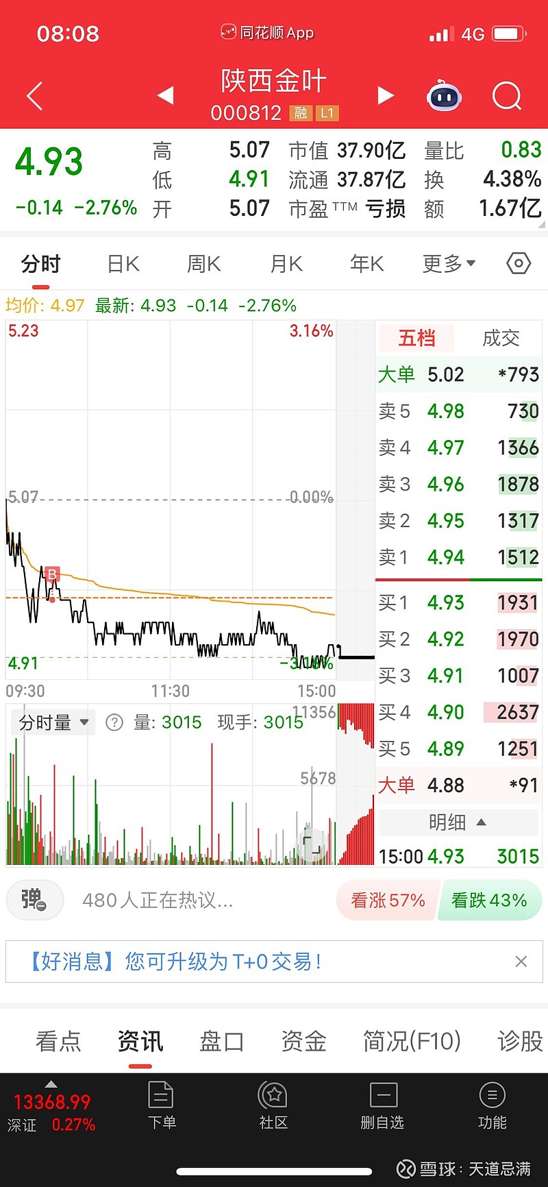周五知道大盘碰前高又该回头了,只是晚了2天,周二确实如我判断下午开始回头,这一回头按照3.4天的小周期,再加上黑周四,不出意外,今天周三跌一些,周四狠跌一天,最快周五水下才能进。但是为啥昨天我又进了,因为陕西金叶这个操作完全按照我的预想在走,按照规律讲,大盘下跌,泥沙俱下,90%的股都避免不了下跌,我进去也是凶多吉少,只能跟着自己的感觉走了。