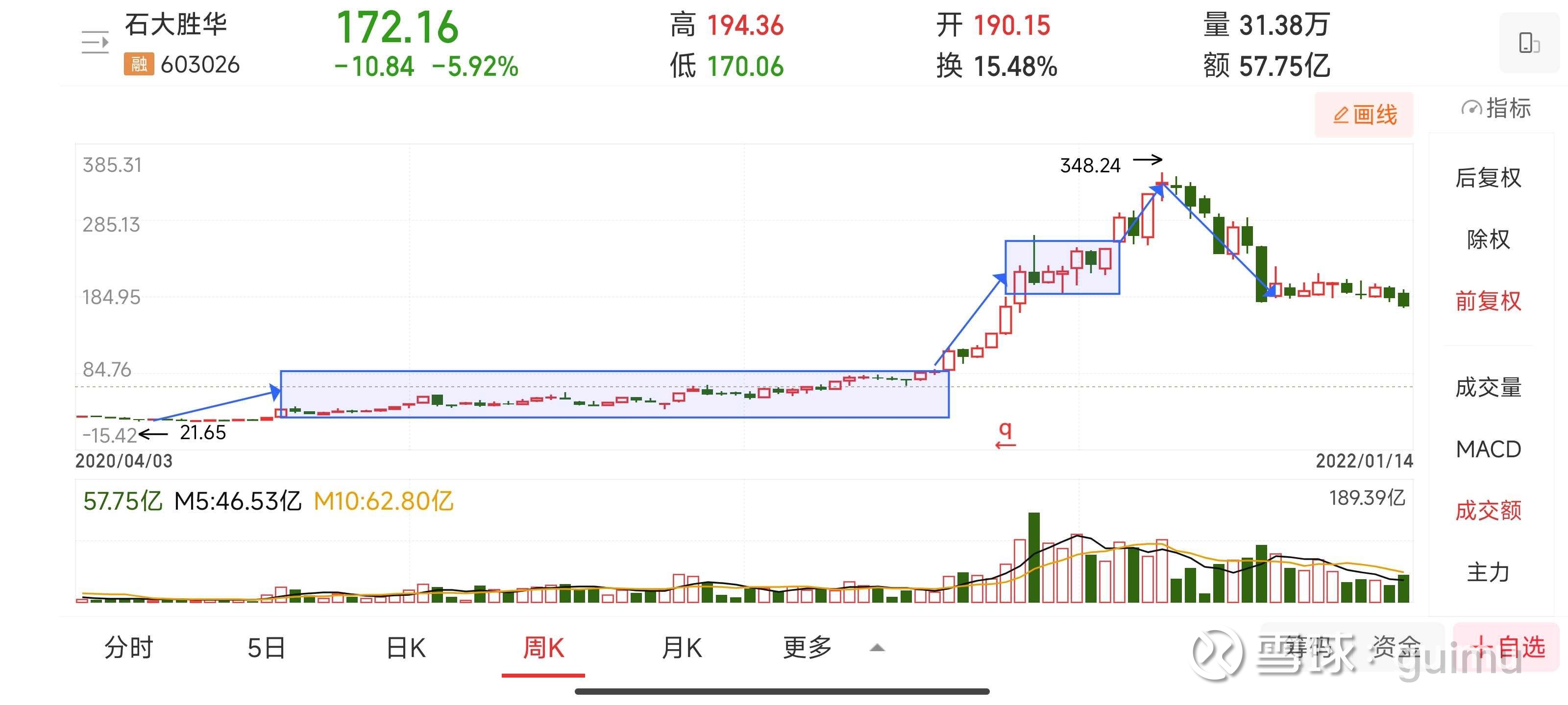 比如20-21年的石大胜华周线图