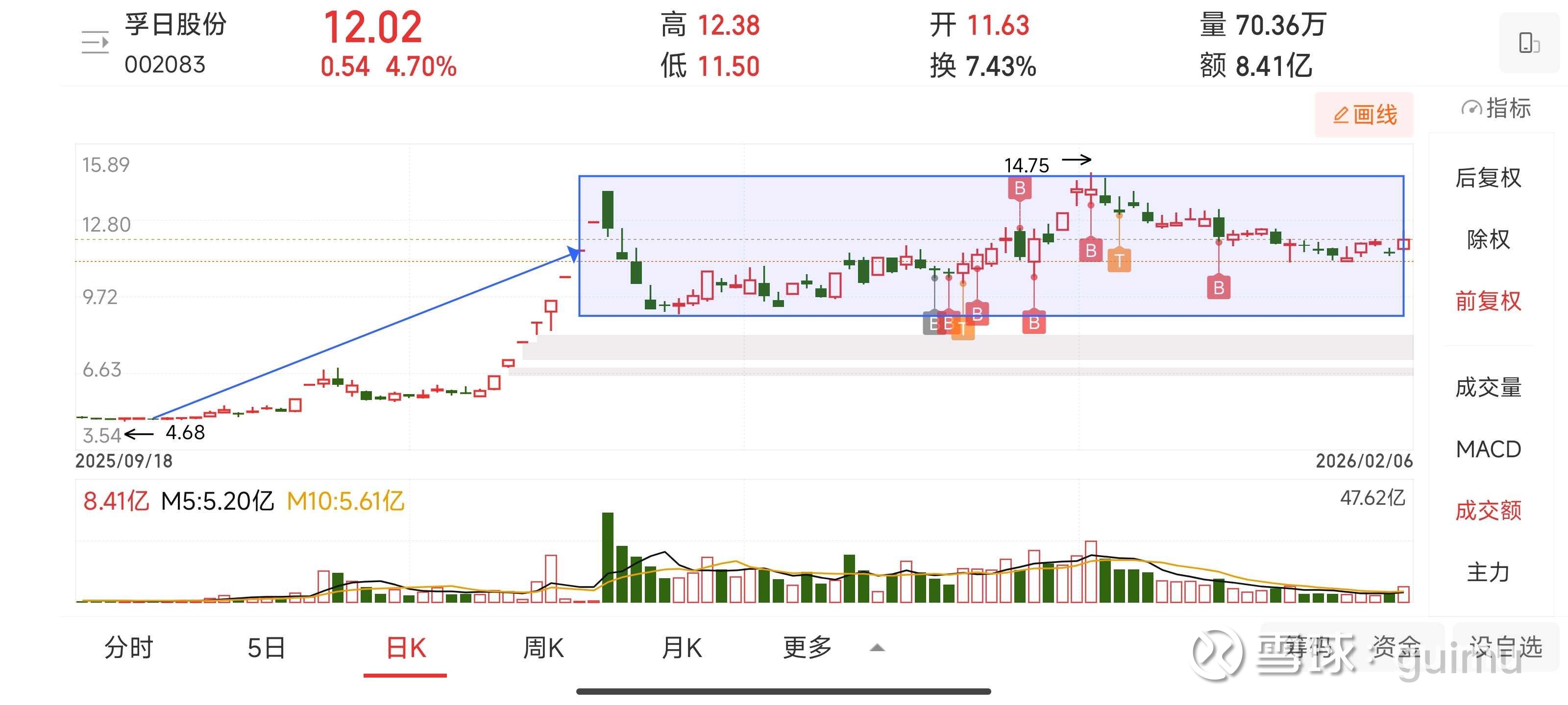 从25年9月开始了第一波上涨,走出了一段非常迅猛的上涨行情,从4.68一路涨到11月18号的13.97后,创出历史天量,见顶回落开始盘整。参考石大胜华和兴业银锡的例子,目前孚日所处的位置大概率为第一段盘整走势。所以,从技术面的角度来看,孚日这个走势远远称不上是见顶,第二,第三段的走势才是它最肥美的主升阶段。