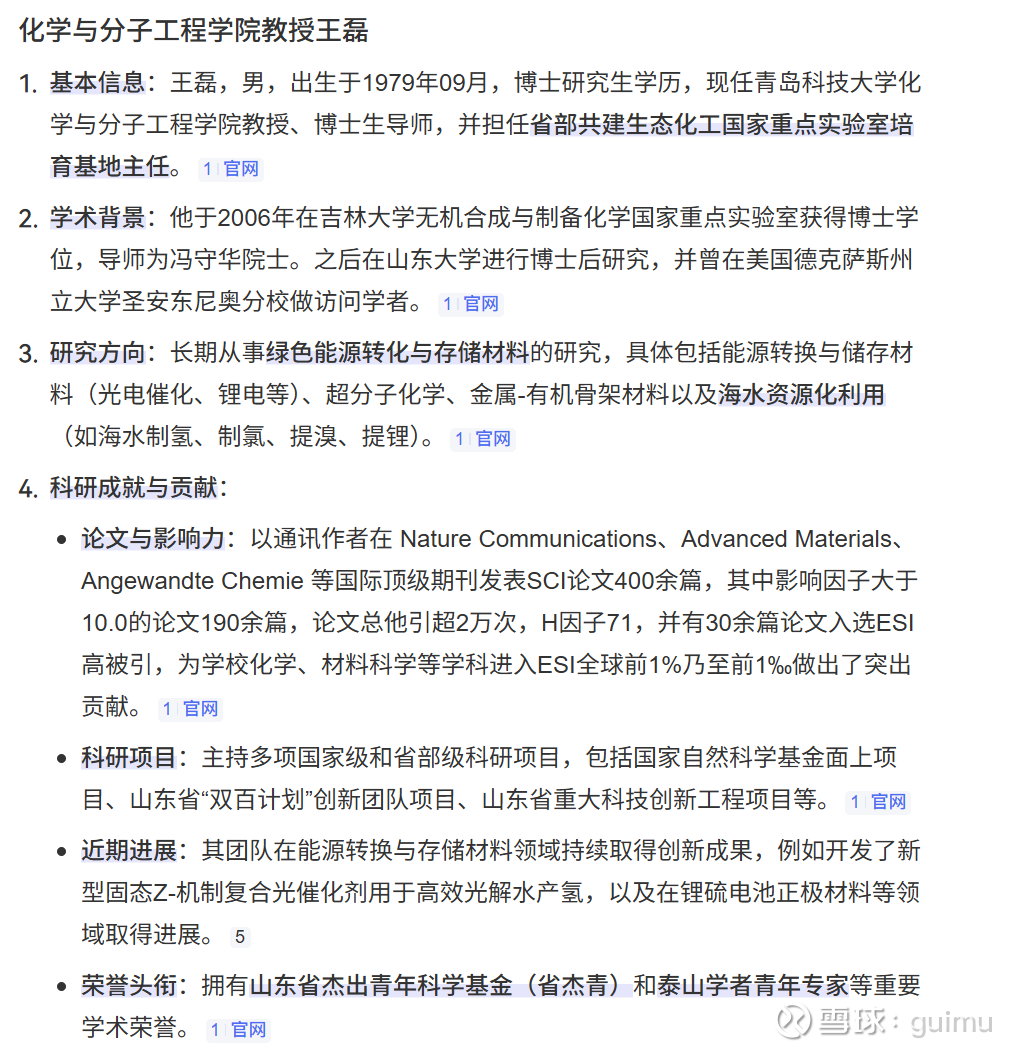 这位王磊是谁?从资料可以看到,他的主要研究方向之一就是锂电池。并且他的博导还是冯院士!因此,一切就有迹可循了,和孚日鸿硅的主要合作方就是王磊教授。