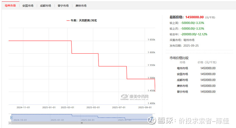 天然牛黄继续下跌,100万是迟早的事