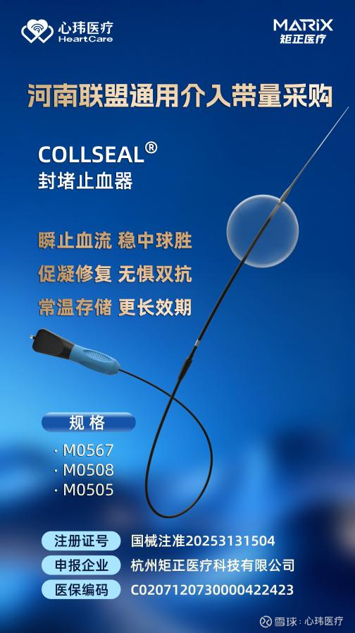 在介入治疗领域,术后止血是关乎患者安全与手术效率的关键环节。心玮医疗与矩正医疗作为介入器械领域的创新力量,此次携手亮相河南联盟通用介入带量采购,以两款性能卓越、操作便捷的封堵止血产品——心玮•脉合封堵止血系统与COLLSEAL®封堵止血器,为临床提供更优解决方案,助力医疗机构降本增效、患者获益升级!