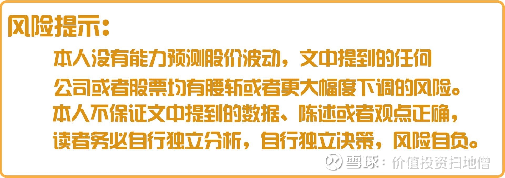 这不是一个投资建议,读者务必独立思考、独立决策、风险自负。
