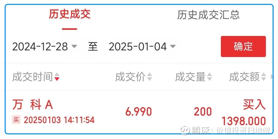 本周交易:买入 200股 万科A @6.99元/股;$万科A(SZ000002)$