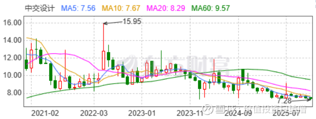中交设计的股份跌到了接近历史新低。目前已经是大约1.11倍的市净率了。