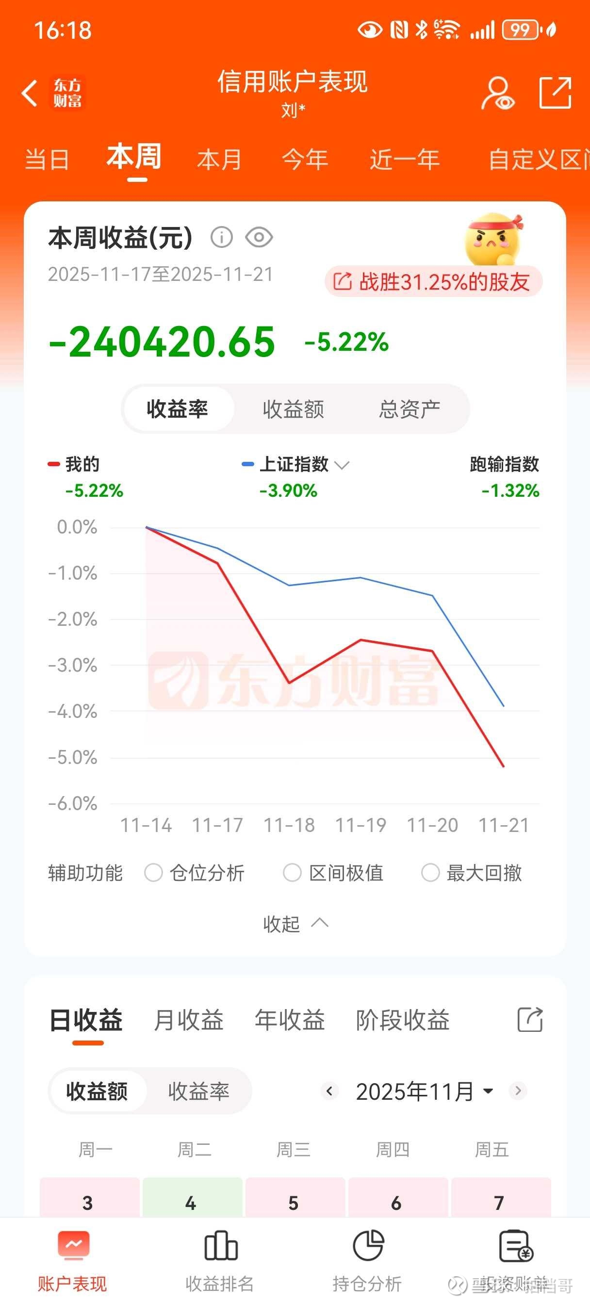 本周净值下跌5.22%,本年度净值上涨20.61%,跑输上证指数。这周行情用一句话点评,覆巢之下,焉有完卵。