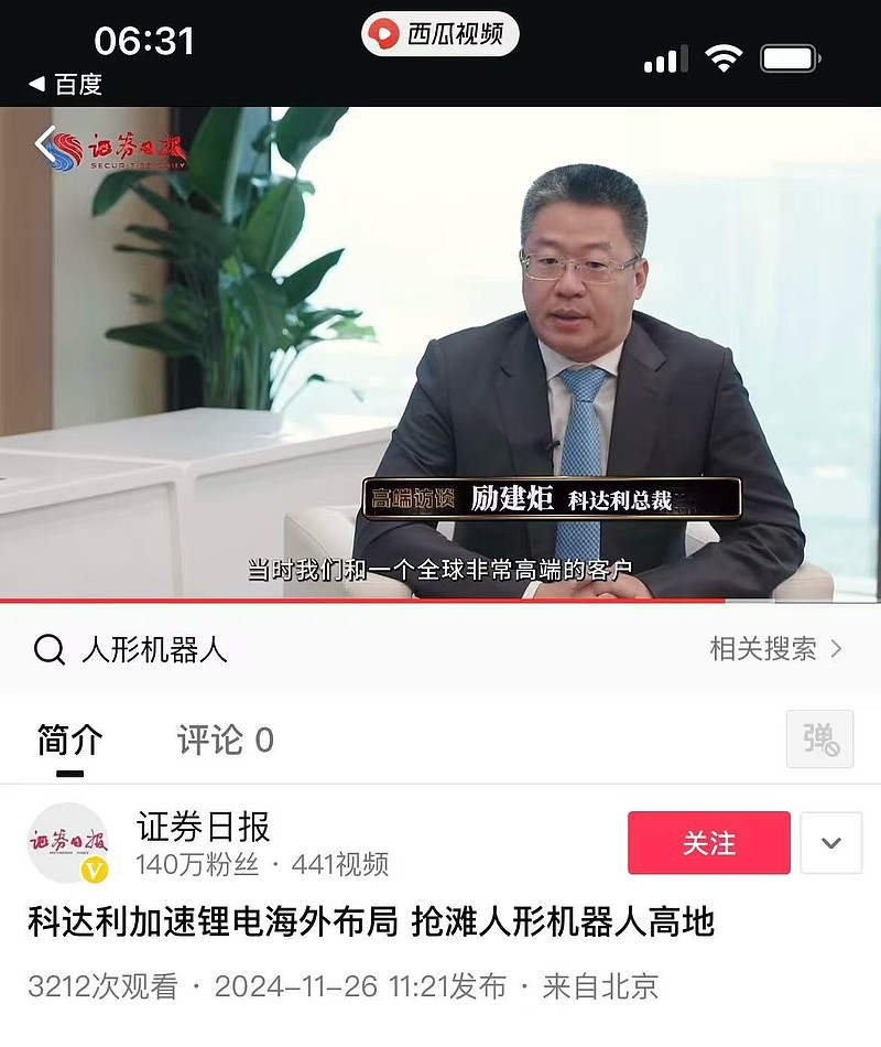 还记得去年11月份《证券日报》记者对科达利CEO励建炬的访谈吗?当时又有几人能信呢?股票涨了,自然就会有人信。相信的人是不是觉得如今很幸福,并对公司未来更有信心?