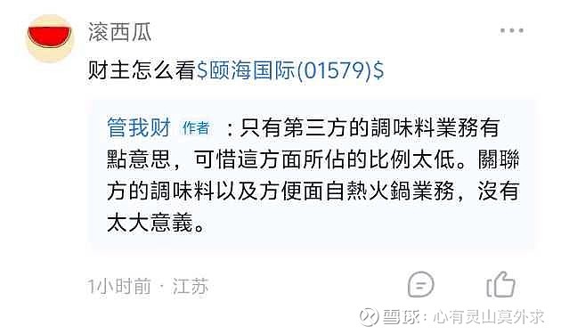 人生滑铁卢,财主对颐海国际的非正面看法让人夜不能寐一边是个人非常推崇的财主在特海国际业绩报告下对颐海国际发表的非正面看法;一边是自己近三年来深度套牢颐海国际,踏空大牛市的巨大沉没成本下的苦不堪言。近80%的超级重仓颐海国际深度绝望套牢中……$颐海国际(01579)$ $海底捞(06862)$ $特海国际(09658)$