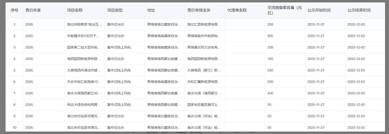 然而前几天青海2026机制电价竞价资质公示,总共就没几个集中式光伏和风电项目参与竞价申报,我发现并没有中绿电这两个项目参与竞价申报,说明这两个项目并不会在2026年竣工投产。