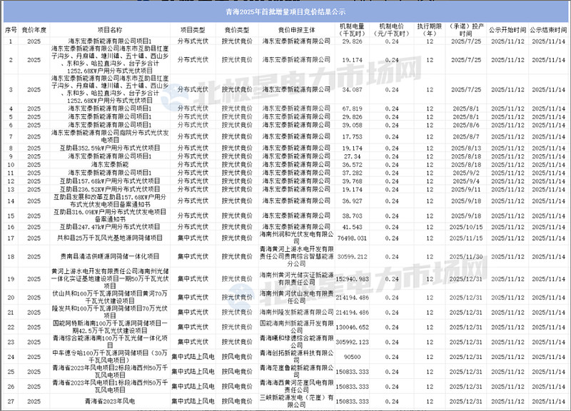 更新一下:根据青海2025下半年新能源机制电价竞价结果公告,文中提到的中绿电青海100万千瓦光储一体化项目和50万千瓦风电项目的承诺投产时间是2025年12月31日。