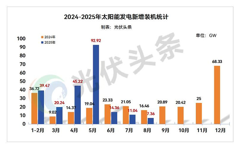 看一下全国24、25年月度光伏新增装机图,可以发现24年12月和25年5月时光伏新增装机最高峰,其后的消纳压力最大消纳率必然在走低,随着25年6月以后新增装机的急剧下降,消纳率在逐步回升,新疆光伏今年9-11月利用小时数同比增加2小时,也算不容易了,算是基本回升到去年年底光伏装机大爆发以前。随着今年开工的大量独立储能电站明年陆续投产和电网建设,消纳率继续回升应该没问题。