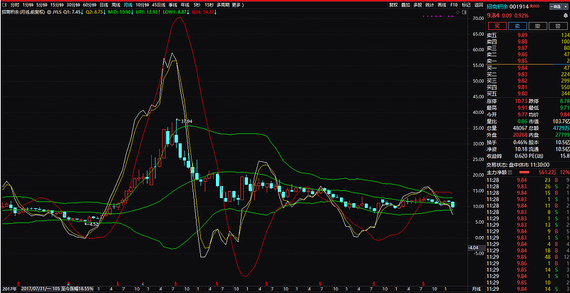 人福医药和招商积余的股价都是几年前高位跌下来后在底部徘徊,月K线已经很久没有摸过股价通道上轨了,迟早都会摸到通道上轨,通道收敛走平、时间越往后摸通道上轨的概率越大,人福医药的通道上轨在23块附近,招商积余的通道上轨在13块附近,我压这两股一年内都要摸到通道上轨,通道上轨算最低目标价,时间上我压人福先摸上轨积余后摸上轨。股价突破通道上轨后,可能有大行情也可能没有,看运气,到时再看业绩、市场氛围是个什么情况。